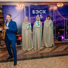 В уютном холле комплекса сотрудников Компании и гостей встречали организаторы и ведущие Event Agency «Sчастливое Sобытие» Светлана и Сергей Коваленко. Праздничный тон вечера задали вокалисты группы «Мимакассы».