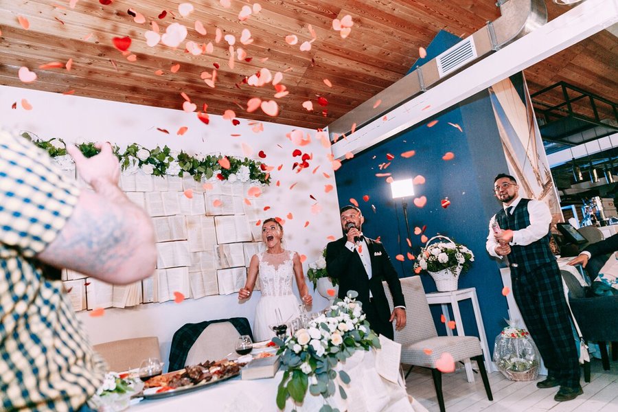 Ну относительно денег, их не было жалко в принципе, поскольку, мы понимали, что при скудных финансовых вложениях невозможно сделать настоящий праздник. Даже те опции, которые изначально мы убрали из сметы, в итоге потом снова добавили, потому что все было завязано друг на друге и все дополняло друг друга. К примеру, возьмем аэросъемку. Первый свадебный танец мы решили танцевать на улице - на подиуме для регистрации, на фоне арки с живыми цветами. Танец был очень красивый - два вида вальса, три поддержки, танцевальные элементы с большой амплитудой. Все это было снято с разных ракурсов не только видеографом, но и аэросъемкой, которая с высоты снимала наш волшебный вальс, полет моего платья, и всю территорию загородного клуба, где проходило торжество. Не думаю, что если б мы отказались от аэросъёмки, это было бы правильное решение, о котором я впоследствии бы не пожалела. Поэтому, лично мое мнение такое - на такое событие, вообще не надо жалеть денег. Но это тоже в пределах разумного. Конечно, не стоит пытаться в один вечер добавить все развлекательные услуги, которые вы знаете. Нужно правильно расставить приотритеты, в чем вам должны помочь ваши организаторы.