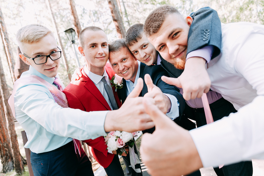 Главное в свадьбе — не декор, а люди: жених с невестой, которые не скрывают своего счастья, и гости, чьи эмоции создают атмосферу праздника.