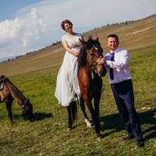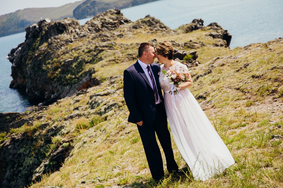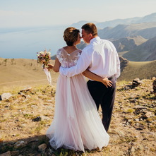 Им не хотелось стандартной свадьбы с шумным застольем и большим количеством гостей, которых нужно развлекать, уделять внимание каждому. Андрею и Наталье хотелось побыть в красивом месте, посидеть на берегу озера, послушать шум прибоя, крик чаек ... свадьба на Байкале - это свадьба для двоих!