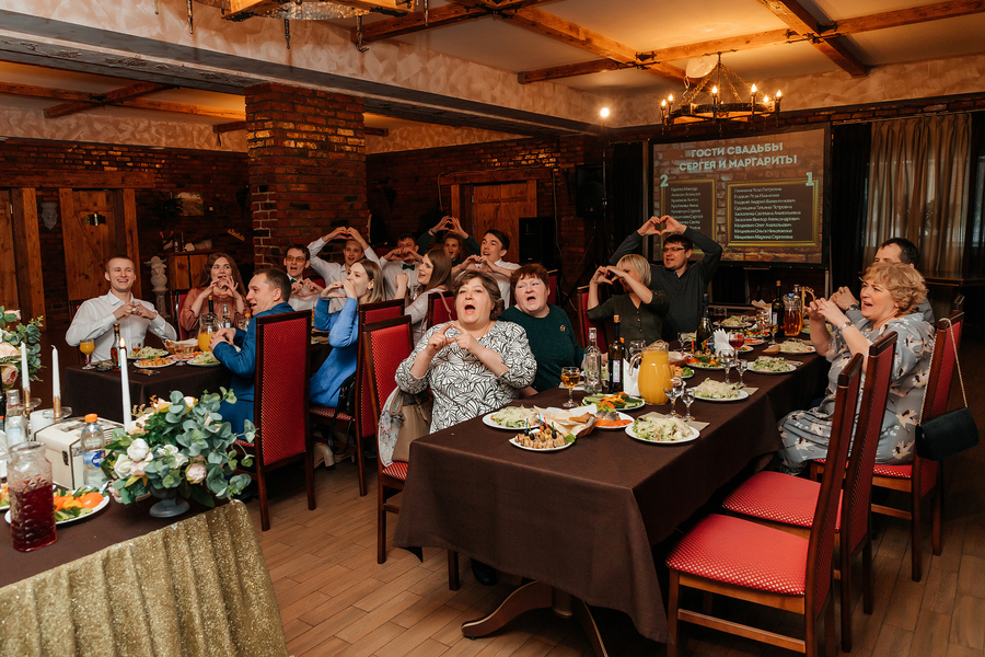 Мы прониклись атмосферой праздника, что очень важно! Спецэффекты - дым, свет, музыка, декор президиума и фотозоны, фейерверки для торта, бенгальские огни и сам стиль банкетного зала. Всё это создавало настроение и крутую атмосферу праздника.