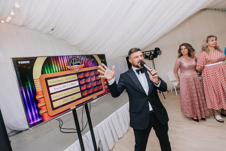 Репертуар ведущих было новшество для нас было. Не было никаких заезженных конкурсов и все было сбалансированно. Было все: и повеселиться, и покушать, и потанцевать. Вы смогли расстанцевать человека, который постоянно говорит: "я не танцую" и сидит за столом. Никаких слов не хватит, чтобы выразить насколько мы счастливы, что именно вы были наши ведущими в такой счастливый для нас день.