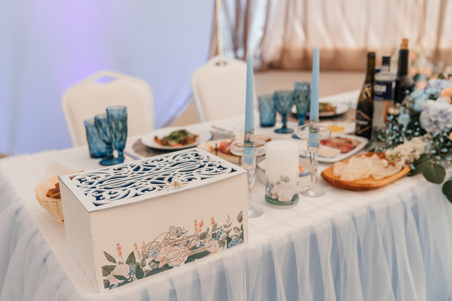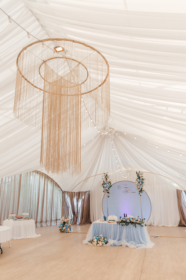 Главными акцентами в свадьбе были сделаны: место проведения и торжественная программа. «Белый берег» стал для нас оптимальным вариантом: отличная открытая зона для церемонии, шатер - удобное место для проведения торжества летом, и немало важный факт, что шатер создаёт уют во время празднования. Нам не было жалко денег на алкоголь и еду, ведь впечатление создаёт не только место, но и качество самого содержания. На дополнительные услуги, дым во время танца, бенгальские огни в конце, благодаря которым получаются замечательные вечерние фотографии.