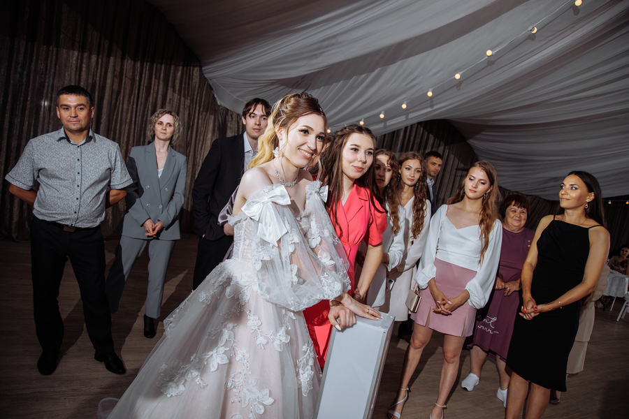 В свадебный день для нас запоминающимся моментом стала "первая встреча". В программе ведущих нам понравились интерактивы, игра "Угадай мелодию", и то когда Сергей вывел Даню на сцену и началось что-то интересное.