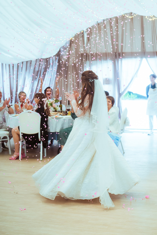 Запали в душу, конечно, церемония, всё очень спокойно, нежно, трогательно, все слова сказанные Сергеем, прямо в точку, ничего лишнего. Первый танец с искрометами, непередаваемые ощущения, и гости все были в восторге.
