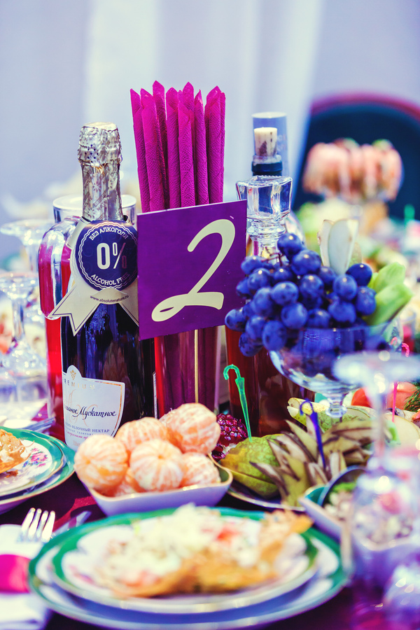 Невозможно упустить из вида тот факт, что абсолютно все элементы оформления свадьбы выполнены собственноручно самой Анастасией и ее дружной семьей, а банкетный зал был украшен и задрапирован до неузнаваемости под чутким руководством и профессиональным взглядом нашей невесты дизайнера и декоратора в одном лице. Часть аксессуаров была привезена молодоженами из Москвы, чтобы доработать детали и акценты для общей картины. Что сделало подготовку необычайно милой и трогательной, ведь практически каждый приложил старания, вложил душу во всевозможные декоративные детали: подсвечники в виде золоченых бутылок из под вина, тающие во рту пирожные и другие сладости для кэнди-бара, ягоды из домашних запасов, магические ловцы снов и многое другое, что помогло воссоздать ту самую уютную атмосферу, которую можно лишь почувствовать, без лишних слов.